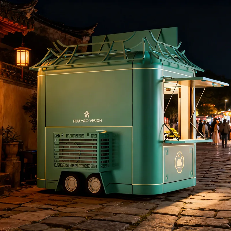 Mobilna przyczepa do żywności to w pełni wyposażona komercyjna mobilna kuchnia, zazwyczaj zbudowana w ramach konstrukcji ciągnionej, którą można łatwo ciągnąć przez pojazd. Został zaprojektowany, aby zaspokoić różne potrzeby kulinarne w podróży, z niezbędnym sprzętem kuchennym, takim jak grille, frytownice, zlewozmywaki i szafki do przechowywania, które można dostosować do rzeczywistych wymagań w zakresie gotowania, przygotowywania i sprzedaży żywności.